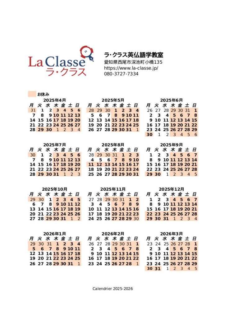 カレンダー – Calendrier